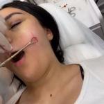 На фото показан процесс, который относится к мини - липосакции лица: жировой комок извлекают через небольшой прокол.